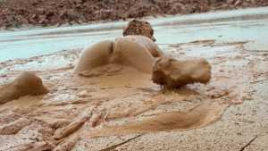 This mud is more sticky, thick and it looks like manure in the texture (but it's mud!).