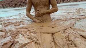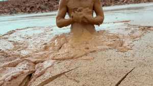 I struggle to dive into this pit, I try to get as deep as possible but I'm getting stuck more and more! As the sun was setting, I had to hurry and jerk off! While being completely covered and one with the thick clay pit, watch me jerk off on my muscular and muddy body!