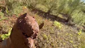 | Still in the same big quarry, with red mud and multiple pools, I've been playing a bit and decided to change pool to try another texture, finish up the work with a handjob and record it.